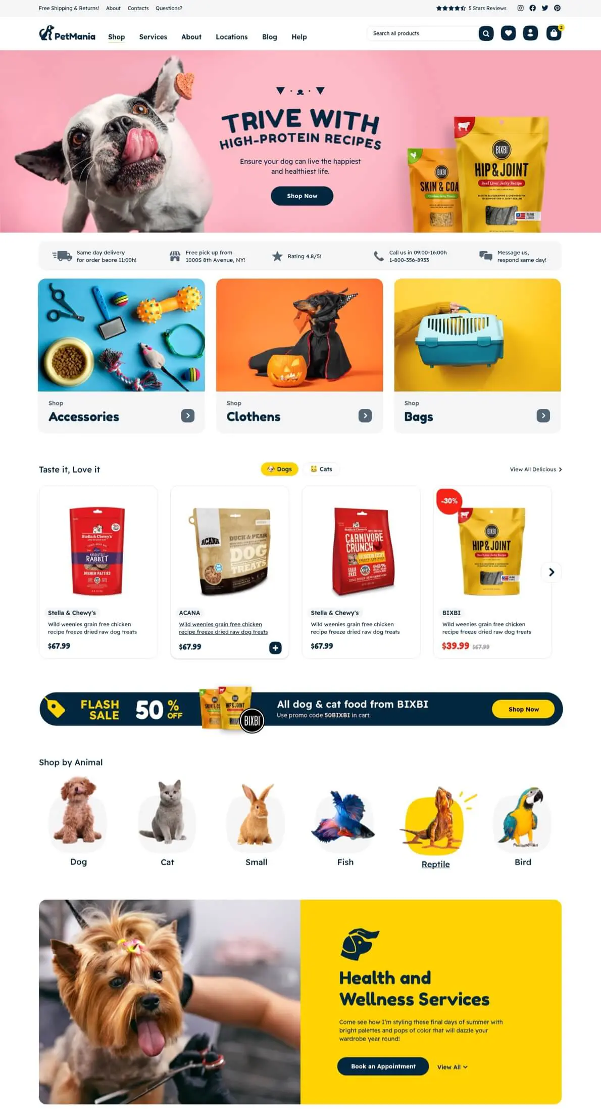 PetMania is a charming, modern eCommerce WordPress theme built with having in mind the actual needs of businesses operating in this segment, their furry clients and caring pet parents.